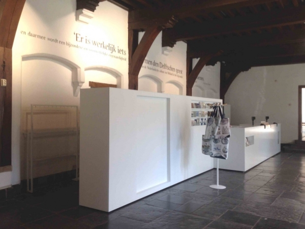 Tijdens het maken van de nieuwe tentoonstellingen van musuem Prinsenhof in Delft kwam ook de vraag om de niet-museale ruimten opnieuw in te richten. Het gaat daarbij om de entree, een ruimte voor de groepsontvangst en de educatie ruimte.