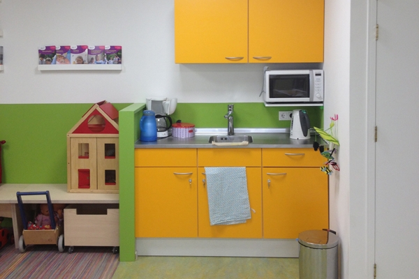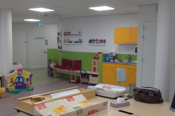 De gekozen materialen en kleurstellingen passen bij de bezoekers. We maken gebruik van berken multiplex en frisse tinten marmoleum.